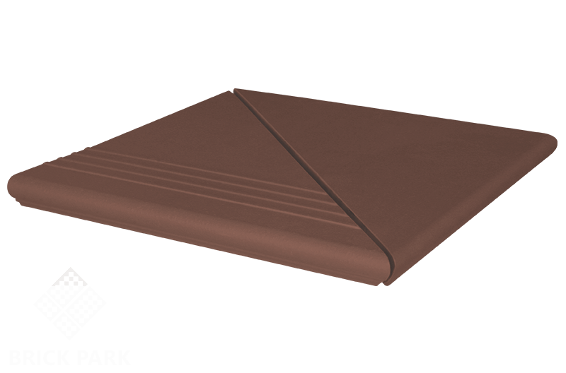 Клинкерная ступень угловая веницианская рифленая KING KLINKER Коричневый натура (03), 330x330x14 мм