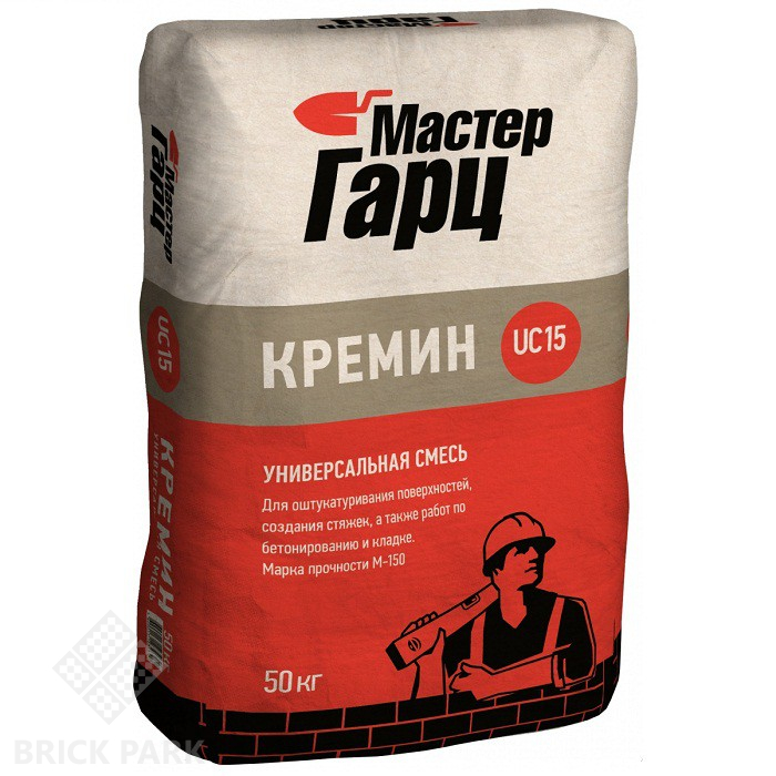 Смесь универсальная Мастер Гарц М-150 Кремин UC15 50 кг Смесь универсальная Мастер Гарц М-150 Кремин UC15 применяется при выполнении различных наружных и внутренних строительно-отделочных работ. Она предназначена для оштукатуривания поверхностей, создания стяжек, а также работ по бетонированию и кладке. Смесь обладает прочностью марки М-150. Область применения Мастер Гарц М-150 Кремин UC15: кладочные работы; качественное бетонирование; укладка тротуарной плитки; штукатурные работы; обработка швов при монтаже железобетонных изделий. Смесь изготовлена в соответствии с ТУ производителя. Производитель гарантирует соответствие качества материала требованиям ТУ при соблюдении правил хранения, транспортировки и применения. Проведение работ. При проведении работ следует правильно подготовить основание: удалить все непрочные и рыхлые участки поверхности; убедиться в отсутствии жировых и масляных пятен на подготавливаемой поверхности; обеспылить поверхность; незначительно увлажнить подготовленную поверхность. Содержимое мешка необходимо высыпать в емкость c чистой водой из расчёта 10 кг сухой смеси на 1,5-2,0 л чистой воды и перемешать ручным либо механизированным способом до получения однородной массы. Внимание! Смесь содержит цемент. Беречь от детей. Во время проведения работ следует защищать кожу и глаза. При попадании раствора в глаза и на кожу тщательно промыть большим количеством воды и обратиться к врачу.