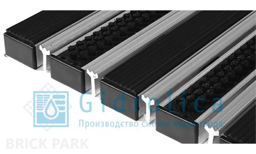 Придверная решетка Gidrolica Step - резина+щетка+скребок 390х590мм