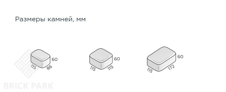 Набор из трёх камней небольшого размера, выполненных в классическом стиле с ярко выраженными скруглёнными фасками.