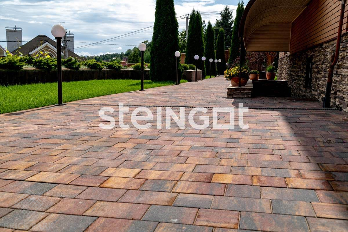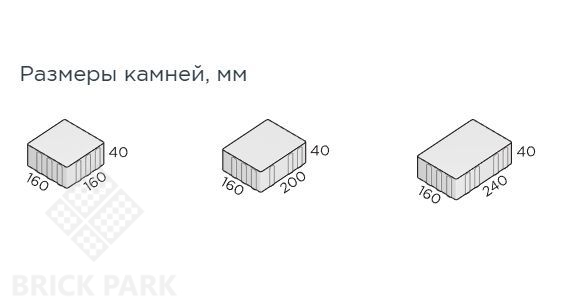 Набор камней среднего формата трех размеров. Удачная комбинация размеров дает красивый визуальный эффект, а относительно небольшой размер камней позволяет производить ручную укладку, без применения специализированной техники. Минимальный размер фаски обеспечивает очень комфортное перемещение как пешком, так и на велосипеде, поэтому данные камни идеальны для мощения парков, бульваров, скверов, пешеходных зон. Наличие широких рустов на боковой поверхности плитки полностью исключает смещение камней в горизонтальной плоскости.